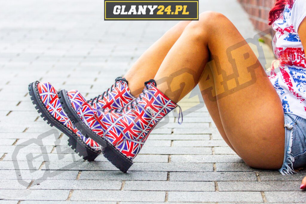 Glany flaga Wielkiej Brytanii to niezwykle interesująca odmiana kolorystyczna glanów, dzięki czemu możemy mieć pewność że nasze glany na pewno wyróżnią się spośród innych i podkreślą nasz wygląd. Glany flaga Wielkiej Brytanii pasują idealnie do ciemnych jak i różnokolorowych stylizacji.